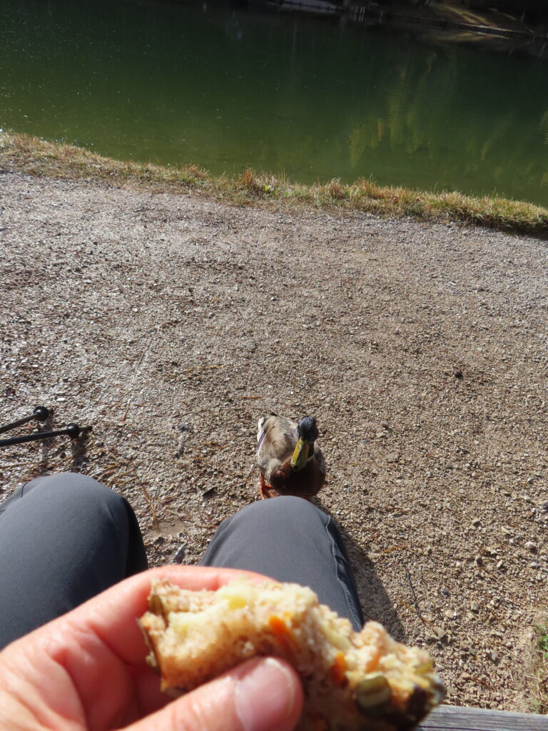 帰りの電車を調べる。時間が十分にあるのでここで景色を眺めながら残っているサンドイッチを食べることに。どっこい鴨が期待の眼差しでやってきたので、早々に引き上げることに。鴨や水鳥にパンをやると彼らのためにならない。パンには大した栄養がないのだが、胃の中で膨らみ満腹になってしまい、本来必要な水草などを食べなくなる。結果鳥の寿命を縮めるので、ドイツでは本来禁止されているのだが、そこまで考えない人間は多い。