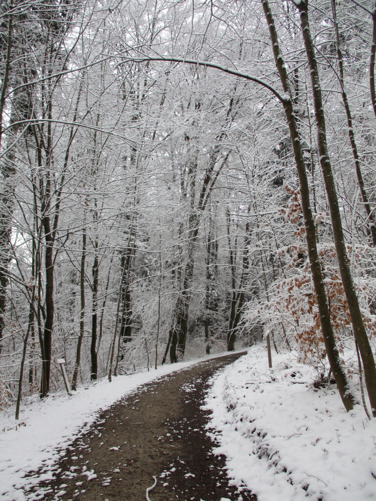 林の中を歩く方が気持ちがよい。雪化粧がきれい。