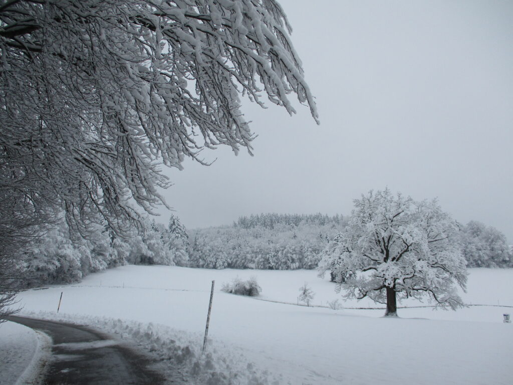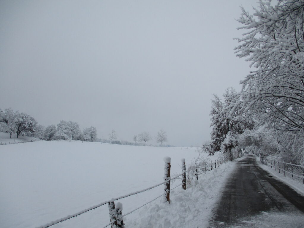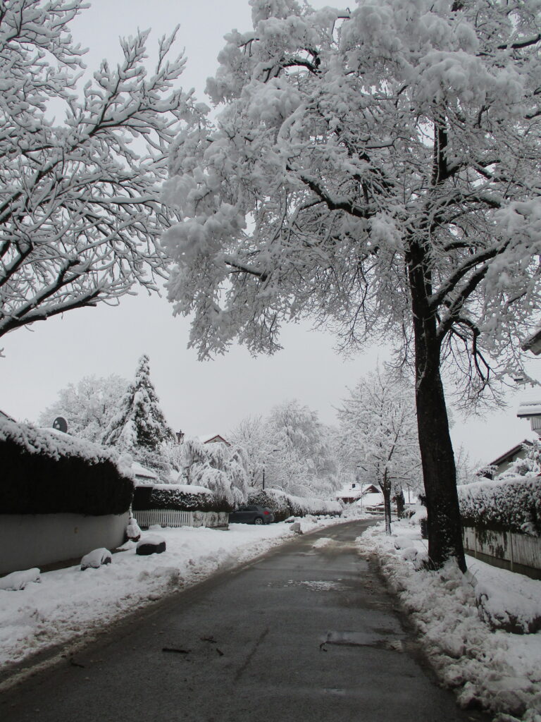 ドイツでは朝八時までに自宅前の雪かきをしなくてはいけないことになっているから、戸建てに住んでいる人は大変。車道は夜明け前から除雪される。