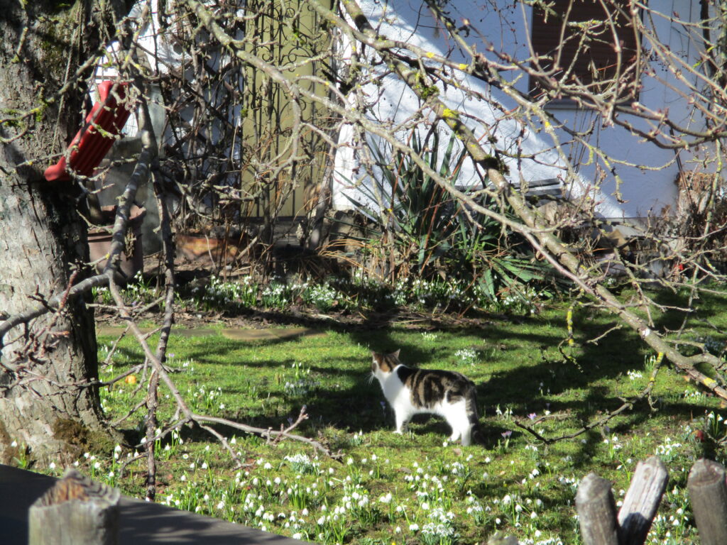 春の庭に佇む猫さん。