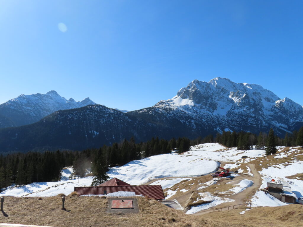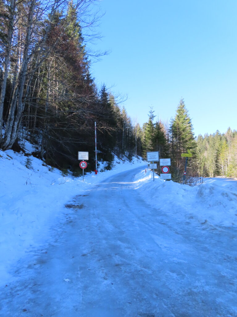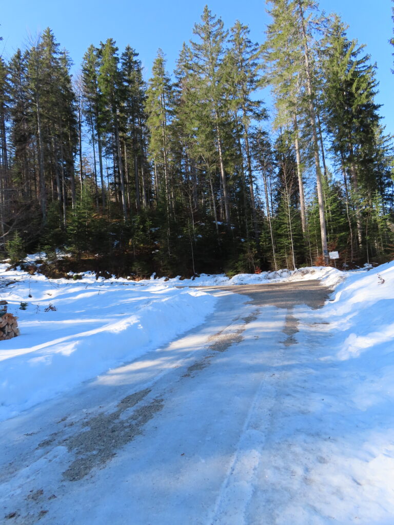 クライスの駅を9時半に出る。軍の演習地の中を通りハイキングルート、平日は演習をしている場合があるのだけど、今日は静かなので大丈夫そう。ただ入り口の道が完全に凍っていた…