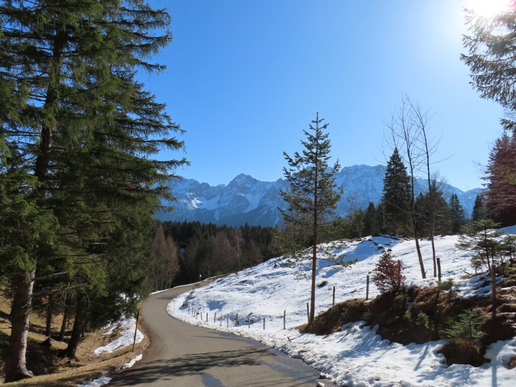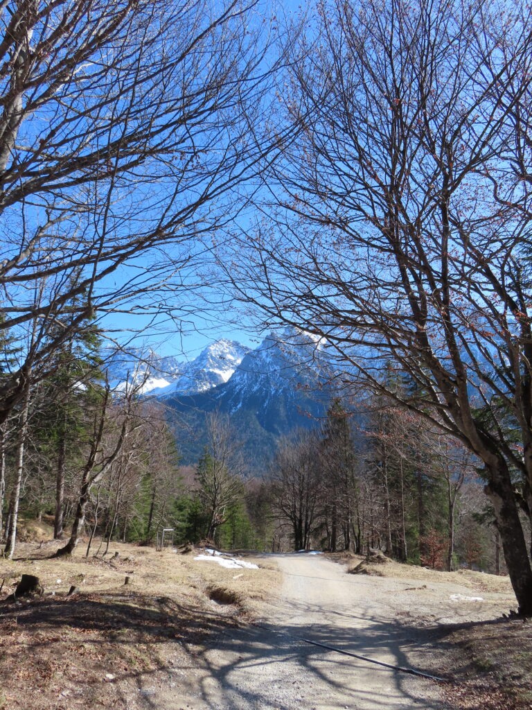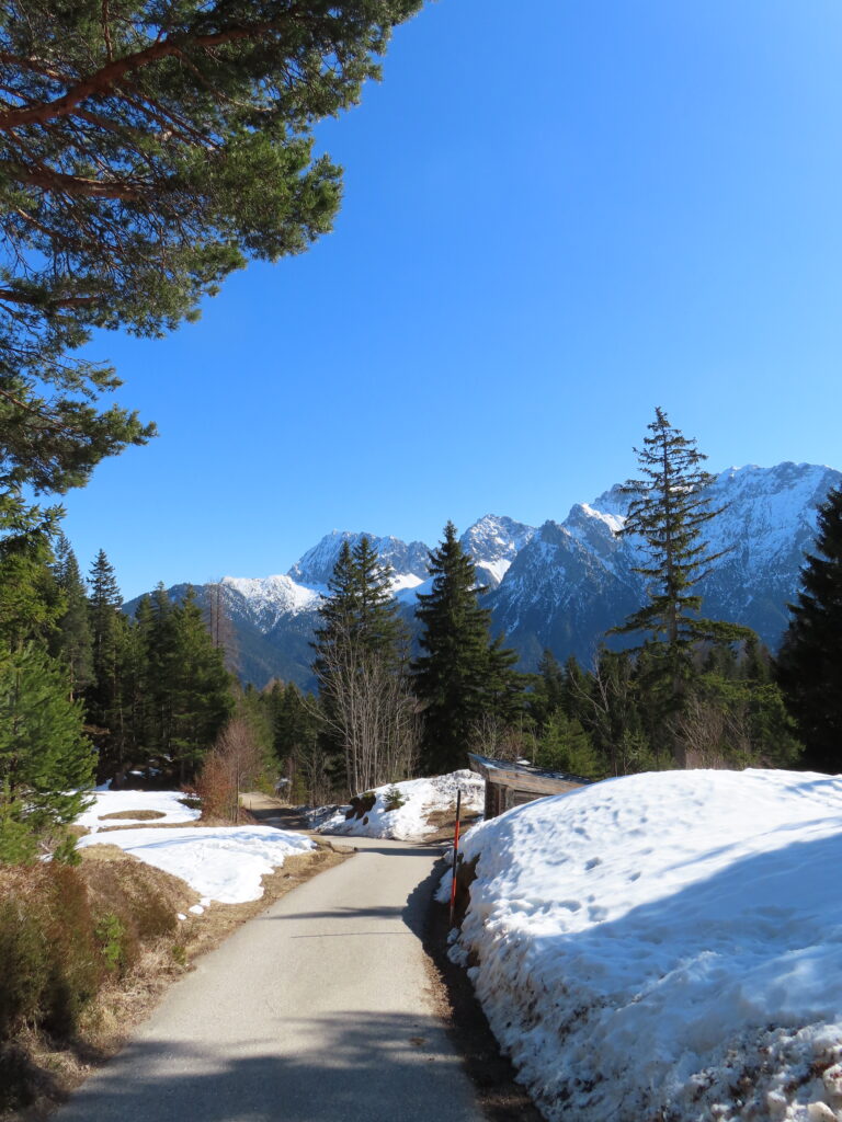 いつもはここから湖のほうに下って帰るのだが、今日は一番早いルートにする。場所によってはまだ雪深いし、しばらく歩いてなかったので脚力が弱くなっているのを実感。