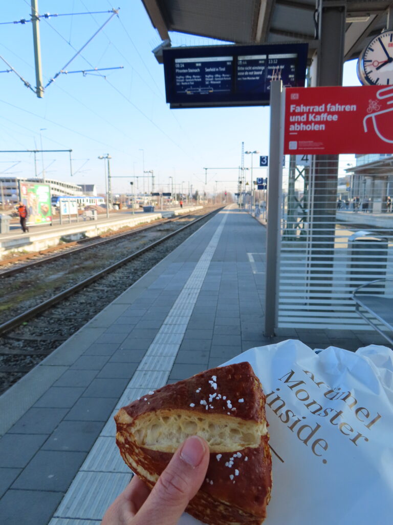 早めに駅に着くとつい買わなくてもよいものを買ってしまう。ジャンクだけど好きなパン。カボチャかヒマワリの種を周りにつけたものが好きなのだけど、今日はこれしなかなった。