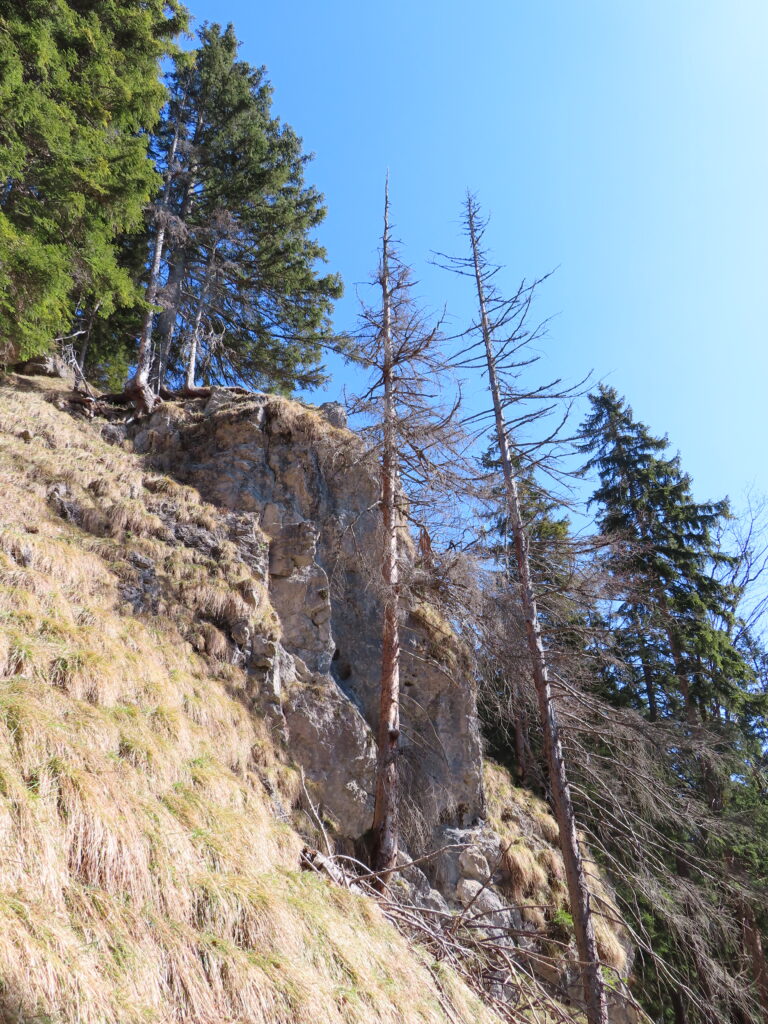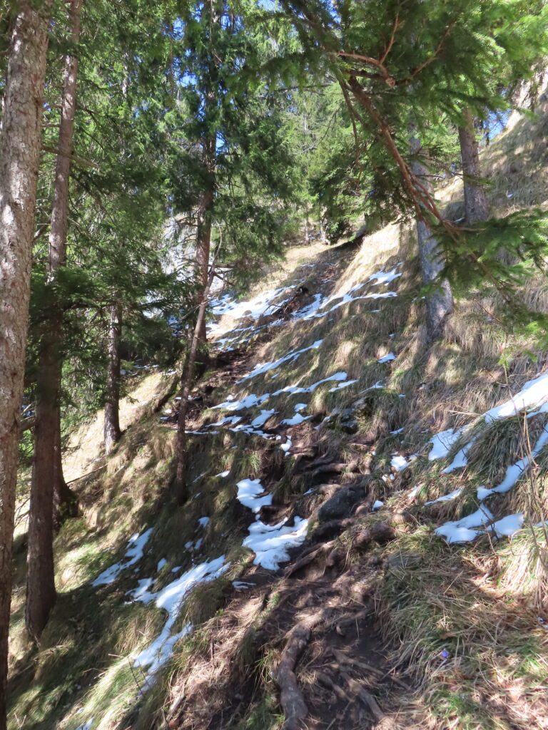 小さな山でも危ないところはいくつか。道が崩れかけたところも随所にあるので気が抜けない。