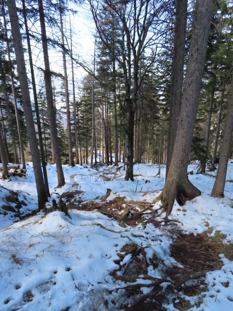 サンドイッチを二切れ食べて下山。この下りが曲者だった。ぬかんでいる上に木の根が露出していて、歩きにくいこと。