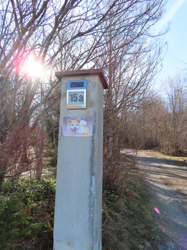 イースターの休み中だから人が多いかと思ったらそうでもない。バードコールグルーブで降りてヘルンレを目指す。途中秋田犬に注意の家が。