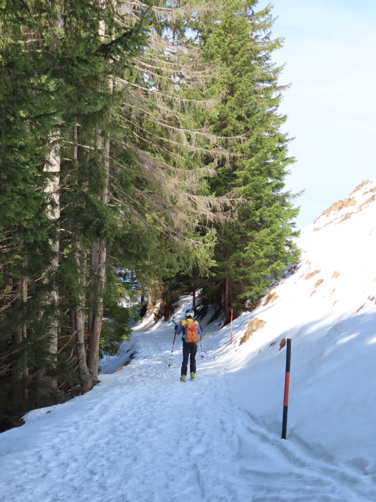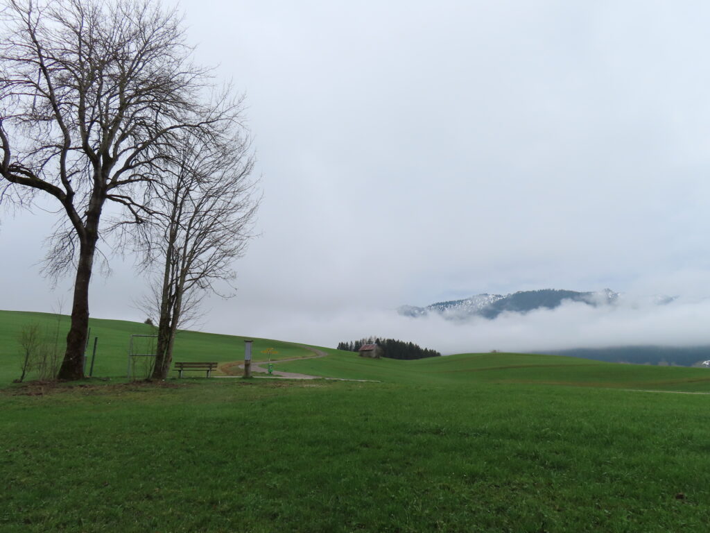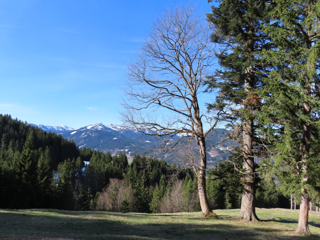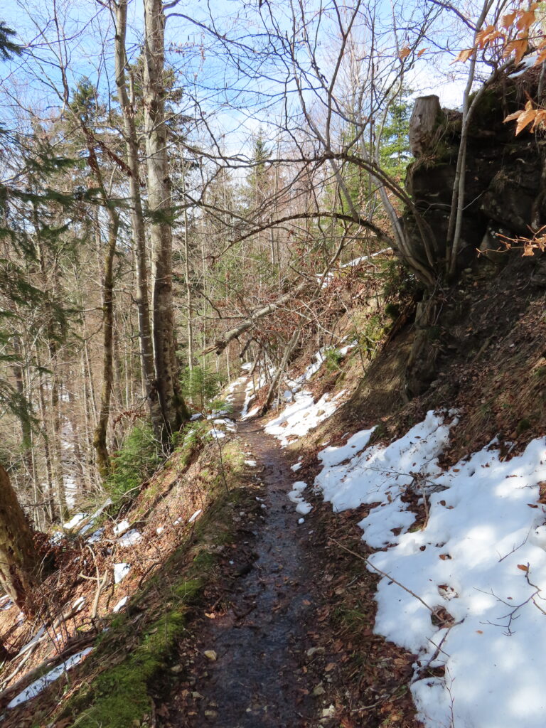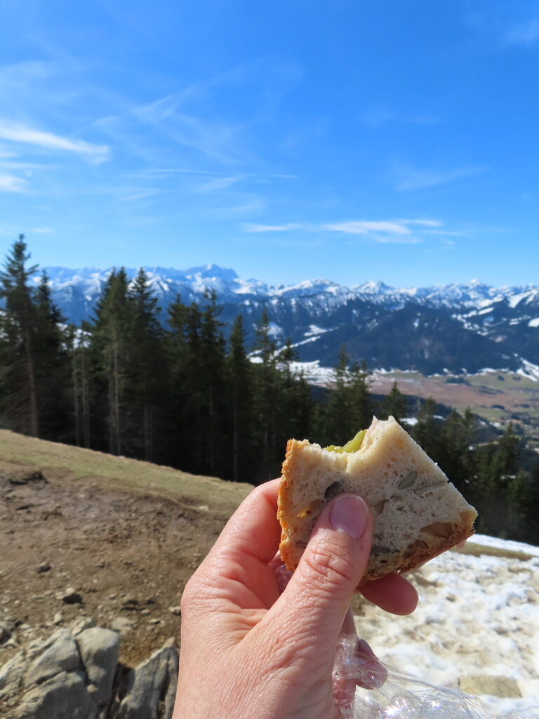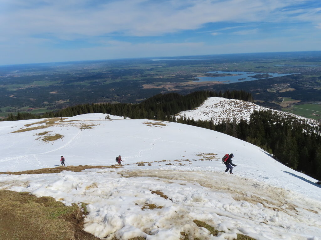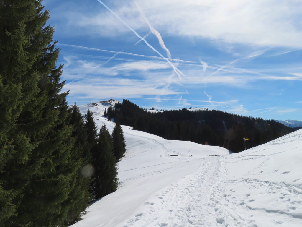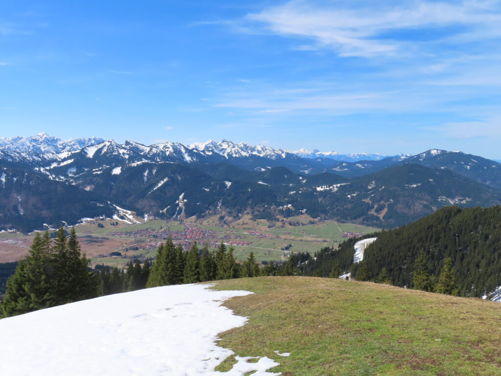 雪さえなければ楽勝の道なのだけど、思ったよりしんどい。いつもはこの写真の左側の「後ろのヘルンレ」に登った後に右側のスティアコプフまで歩き、その後アマガウに降りるのだけど、道がどうなっているかわからない。