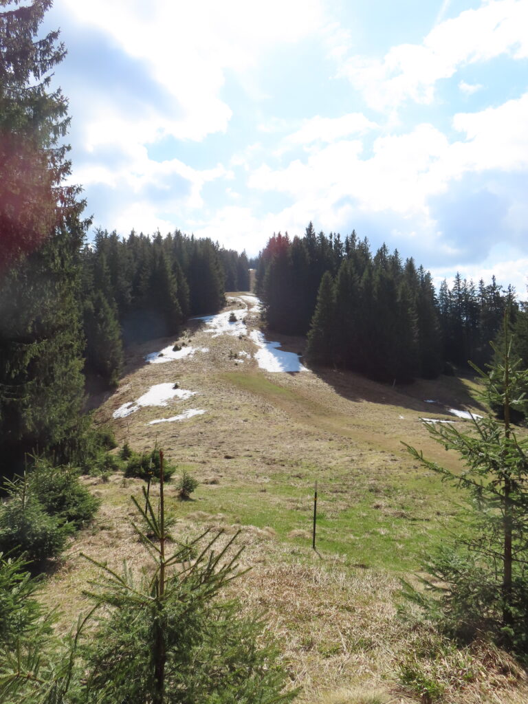 後ろを振り返って。去年の春はもう少し雪があるときにきて、雪と雪解けでぐちゃぐちゃ状態だった。今回はそれに比べるとだいぶ楽。