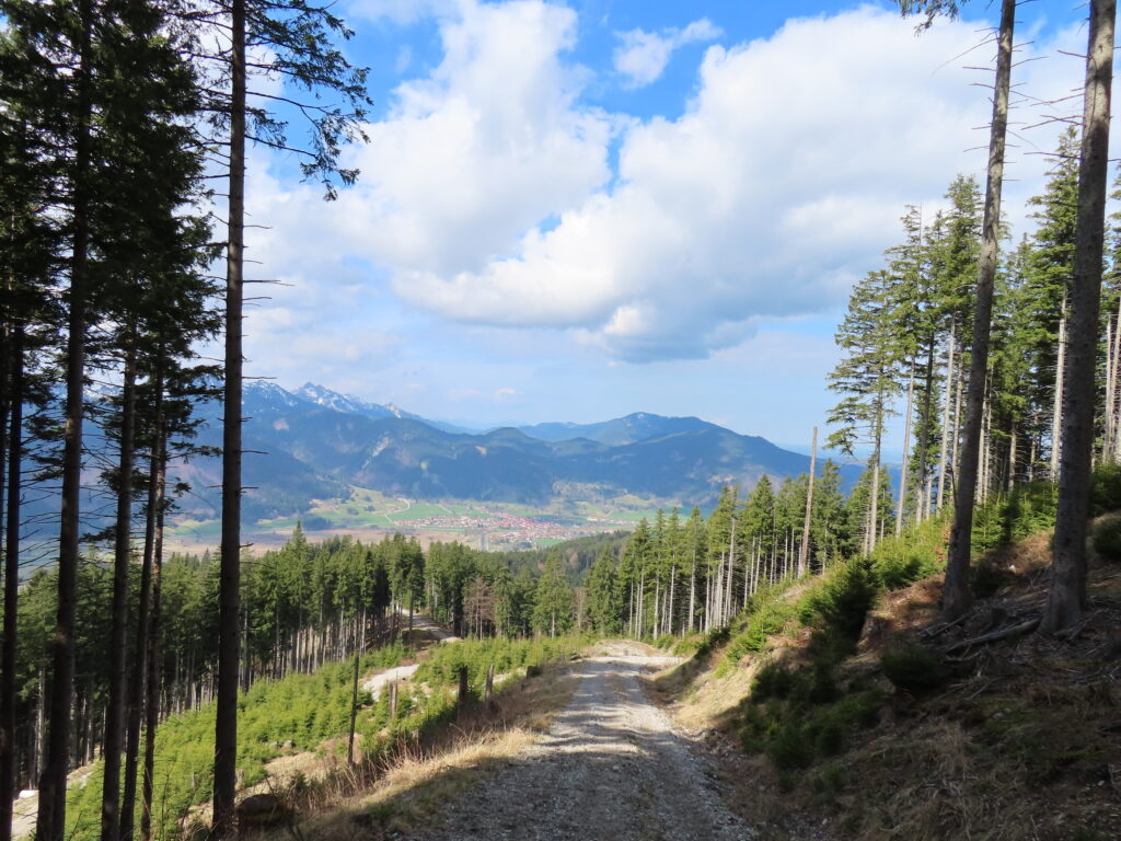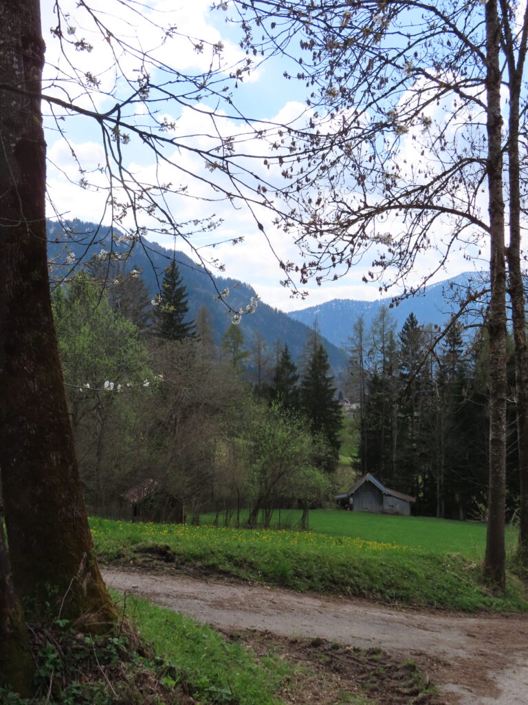 サンドイッチ休憩の後は下山。登ってきた道を降りてバス停に行くのが一番近いのだけど、ちょっと遠回りだがオーバーアマガウの駅に向かう道にする。