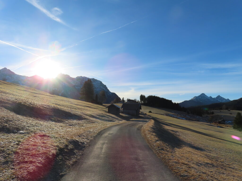 この日(12月21日)は昼が一番短い日の前日。太陽がかなり斜めから登っているから影もびよよんと長くなる。