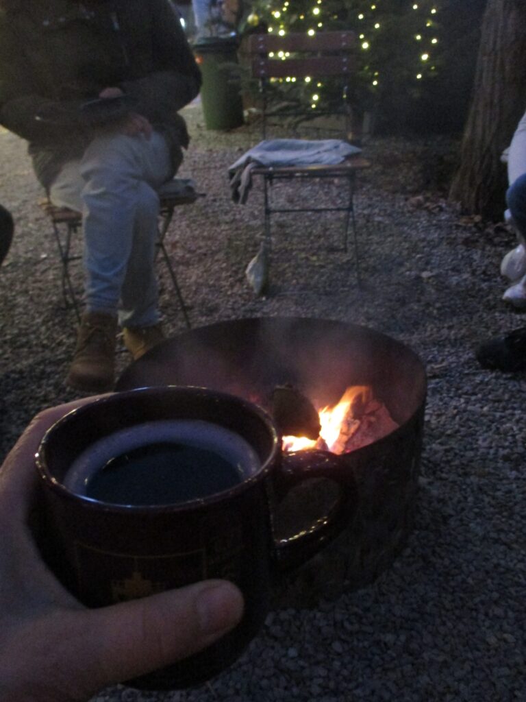 店はたいしてないが、雰囲気は悪くない。焚火があるので、座って休憩。