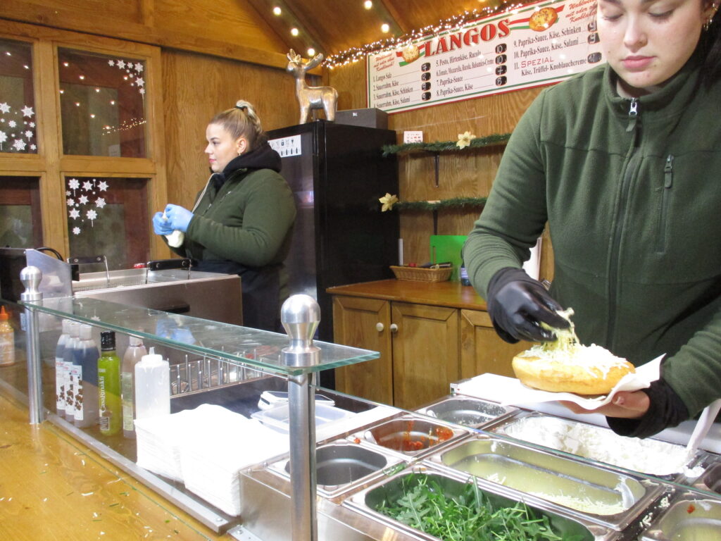 ホットワインはかつては赤ワインのみだったが、最近は白ワインバージョンも普通にあおくようになった。甘い飲み物はあまり好きではないのだけど、クリスマスマーケットにはつきものだから頼む。
