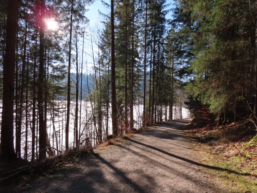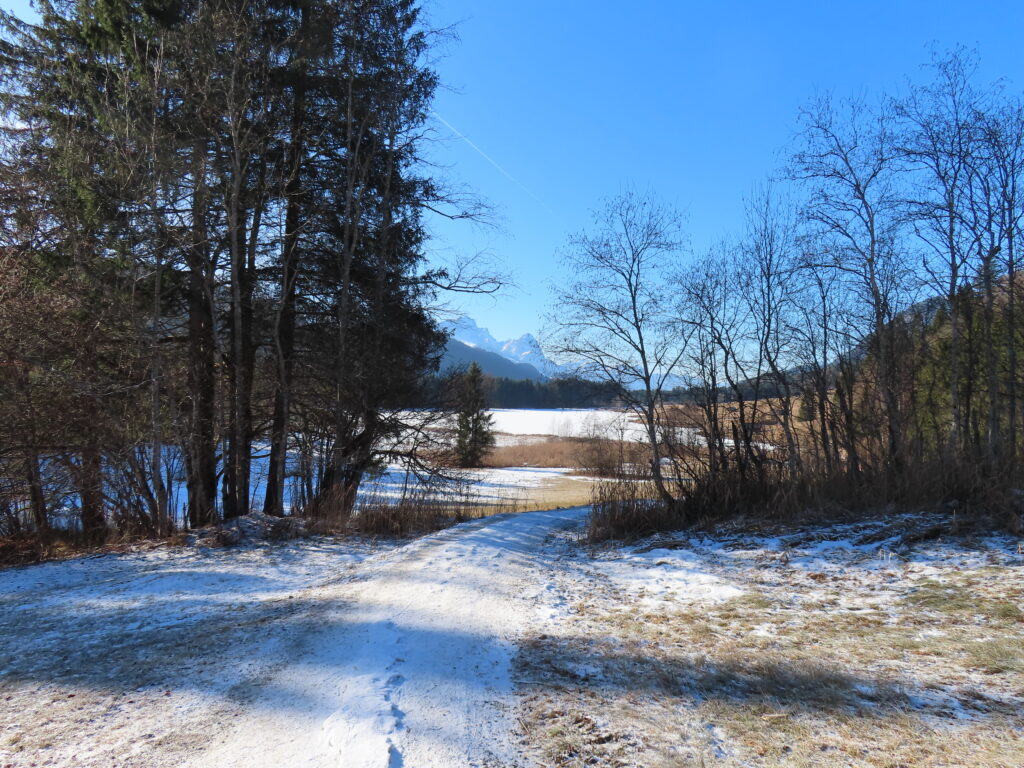 バーム湖を過ぎてゲロルト湖へ。雪はないがところどころ一度溶けたところが凍り、その上にうっすら雪が積もっている。そういうところは下手すると滑るので注意が必要。